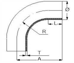 DIN Svejsebøjning Lang Ø12 mm = DN 10. 90 grader. Udført i rustfri 316L. Overflade: Satin